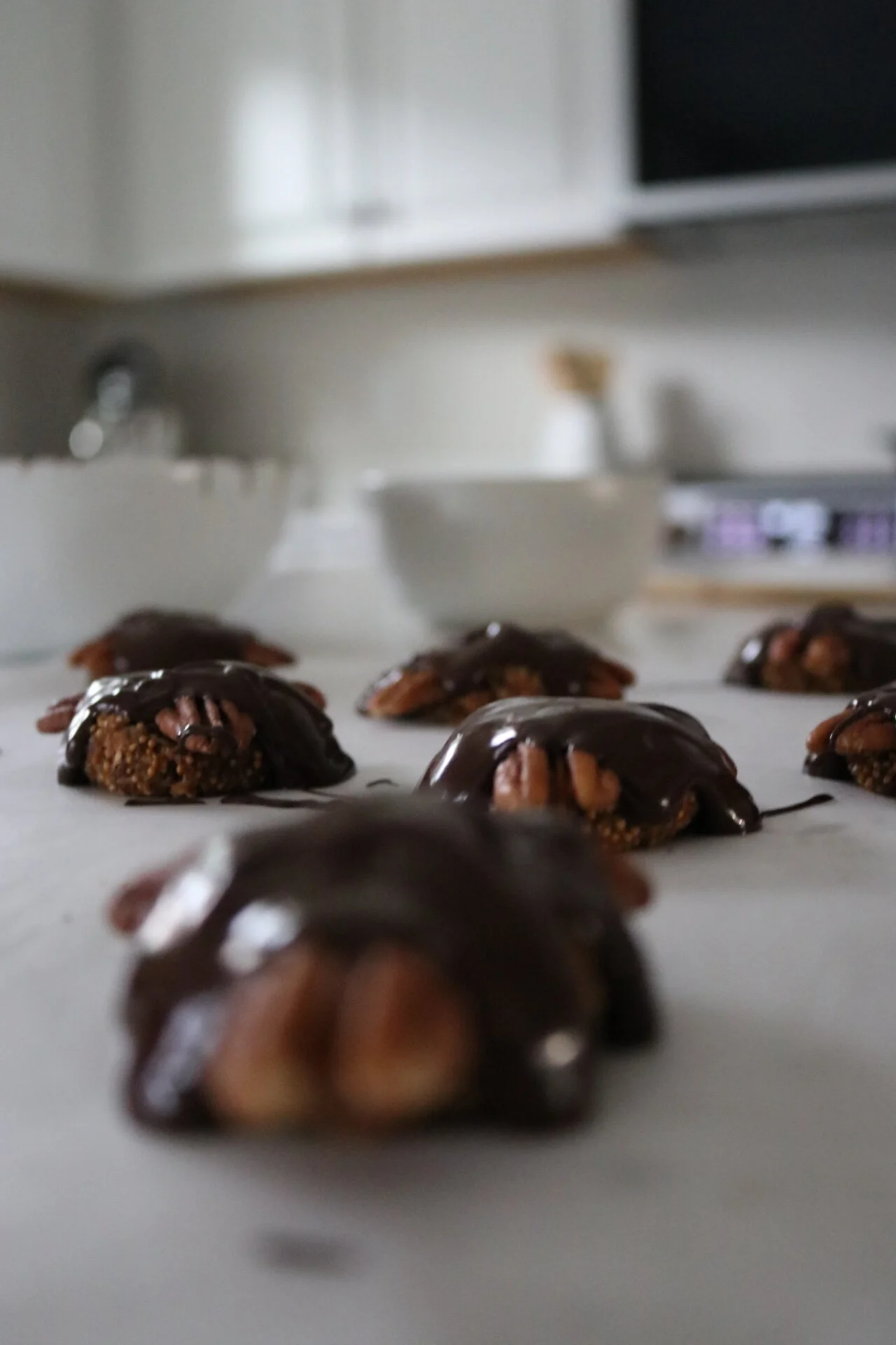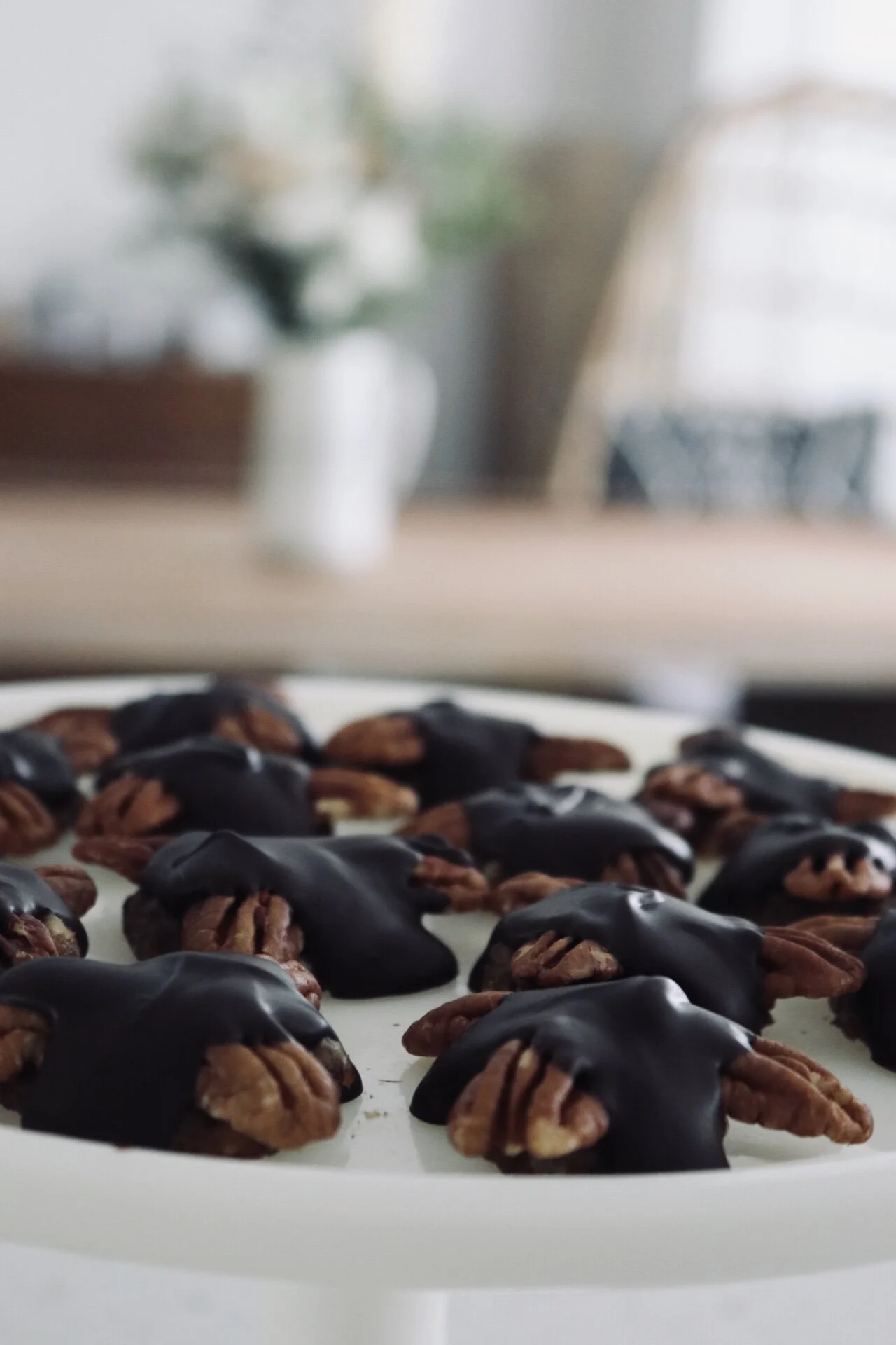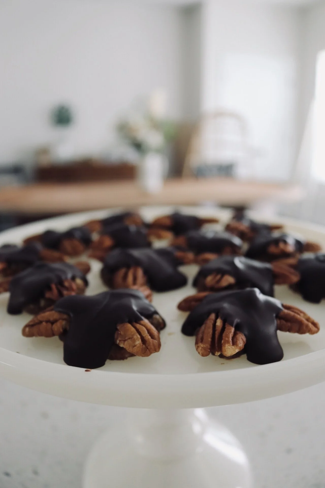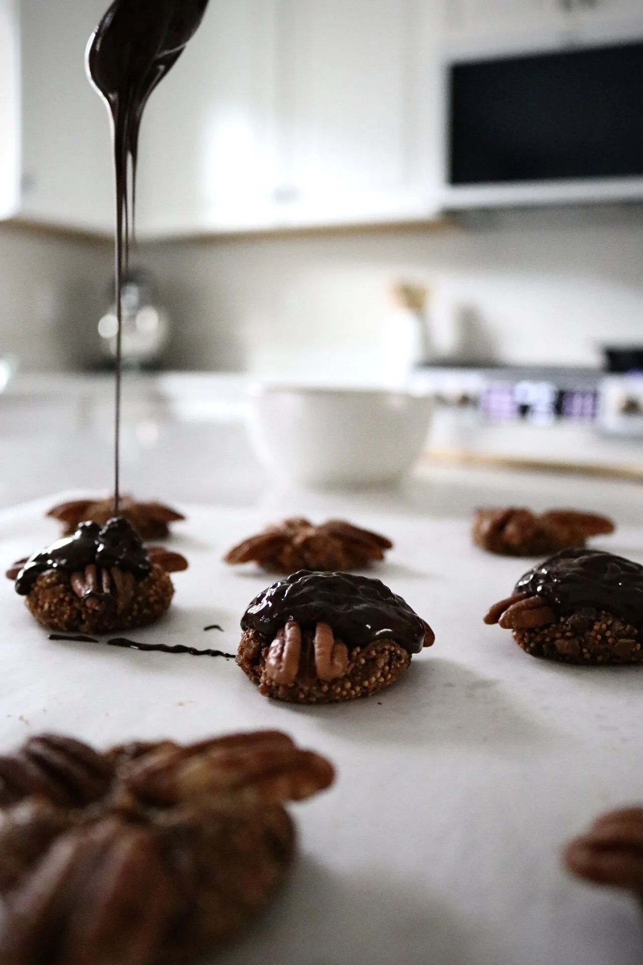 Spoon chocolate on the date and pecan cluster, about 1TBS on each (or more)!